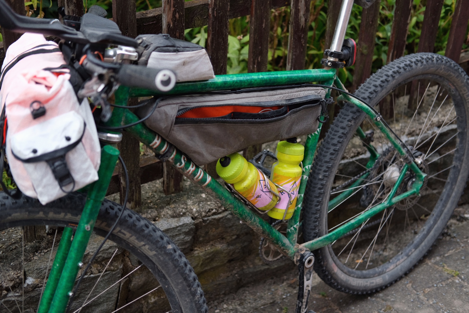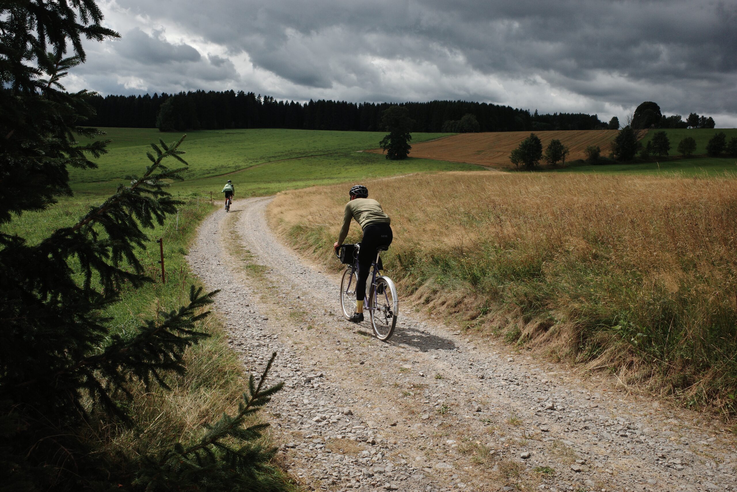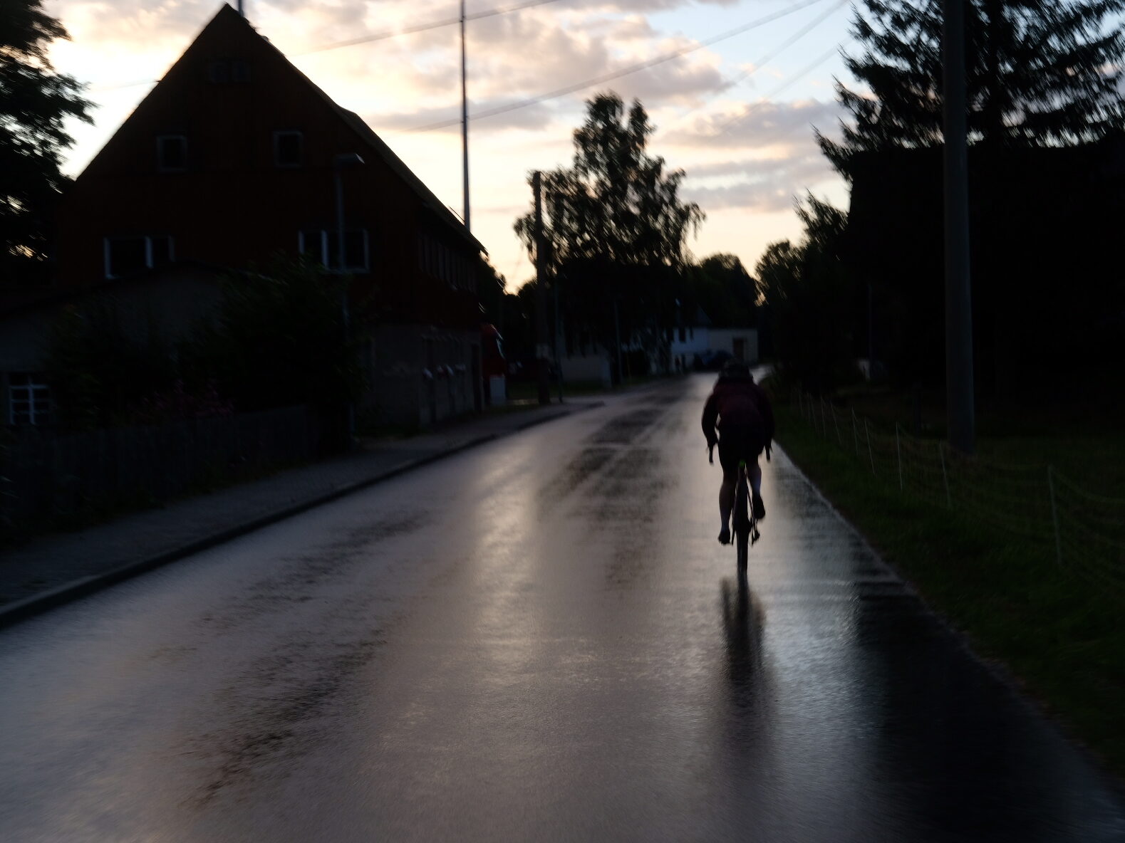 Hinter Olbernhau wartet noch einmal ein langer Anstieg, bevor das Ende langsam greifbarer wird. Die Untergründe sind aufgrund des vielen Regens eine Tortur für alle Schutzblechfahrer. Der Schlamm verbeißt sich förmlich zwischen Reifen und Schutzblech und erstarrt zu einer festen Masse, die sich nur schwer wieder raustreten lässt. Flüche hallen durch dunkle Fichtenwälder, aber es schreckt niemand, denn niemand sonst ist da 😀